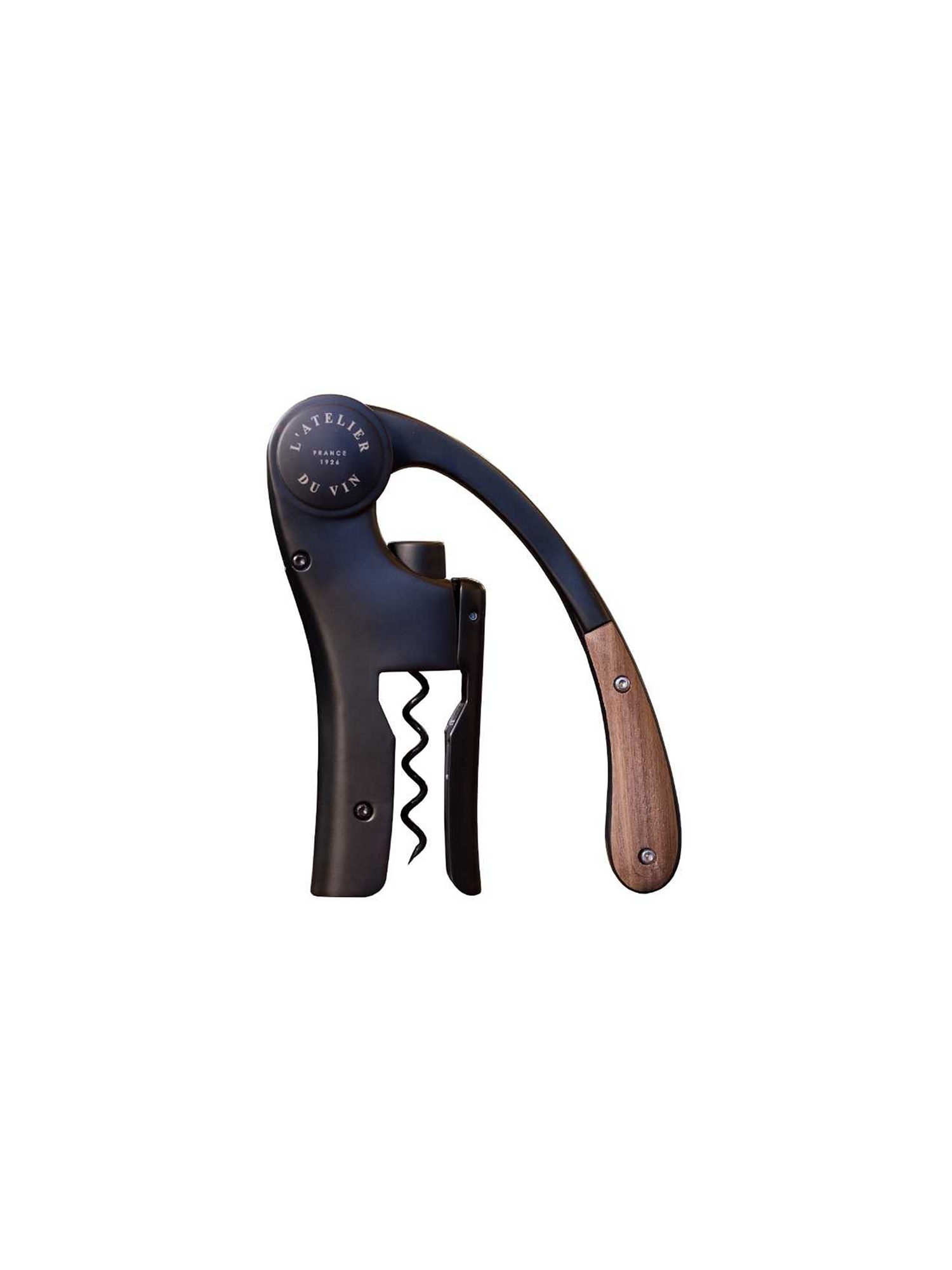 Der Korkenzieher verfügt über einen vertikalen Hebel, der mit Leichtigkeit jeden Korken entfernt. Die schwungvolle Kurve des Korkenziehers wird durch die mattschwarze technische Beschichtung betont und verleiht ihm eine verführerische Aura.