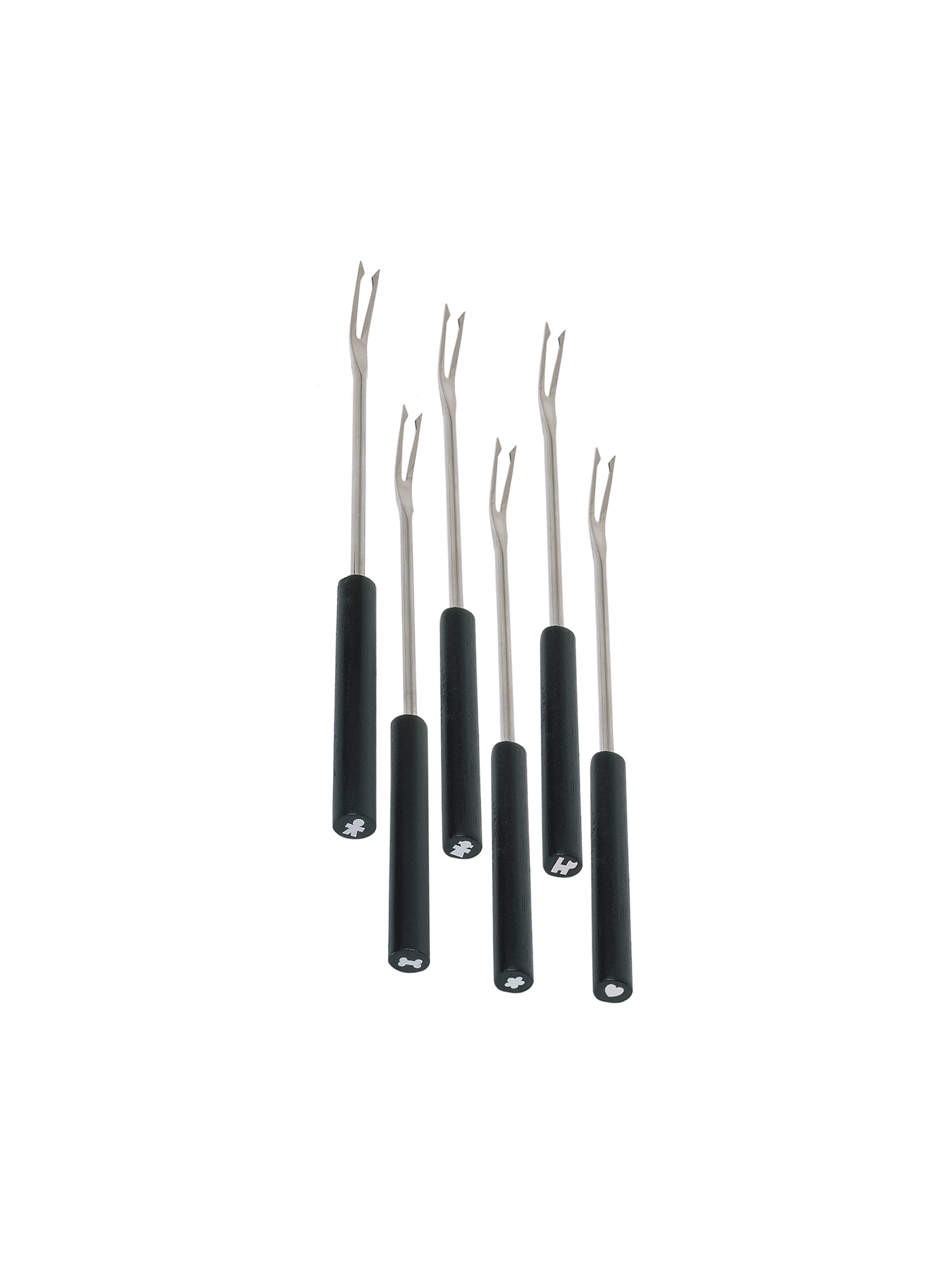 - Jede Gabel mit kleinem silbernen Symbol zur einfachen Identifizierung der Verwendung