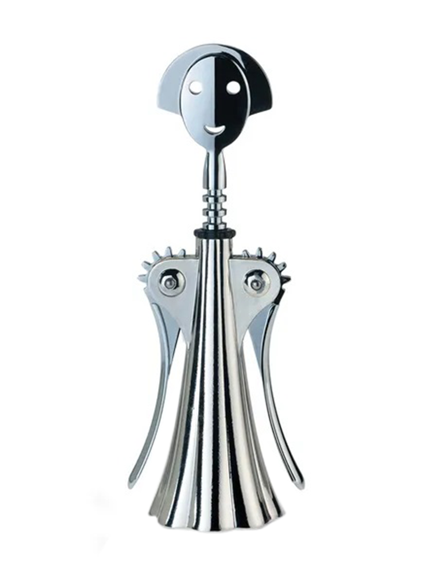 Der Korkenzieher von Anna G. ist ein beliebter, vornehmer und attraktiver Flaschenöffner mit elegantem Design. Der leichtgängige Hebelkorkenzieher-Mechanismus, auf dem die charmante und lächelnde Figur von Anna G ihren Kopf mit Freude dreht, wenn klar wird, dass sie den Korken leicht aus der Weinflasche heben kann.