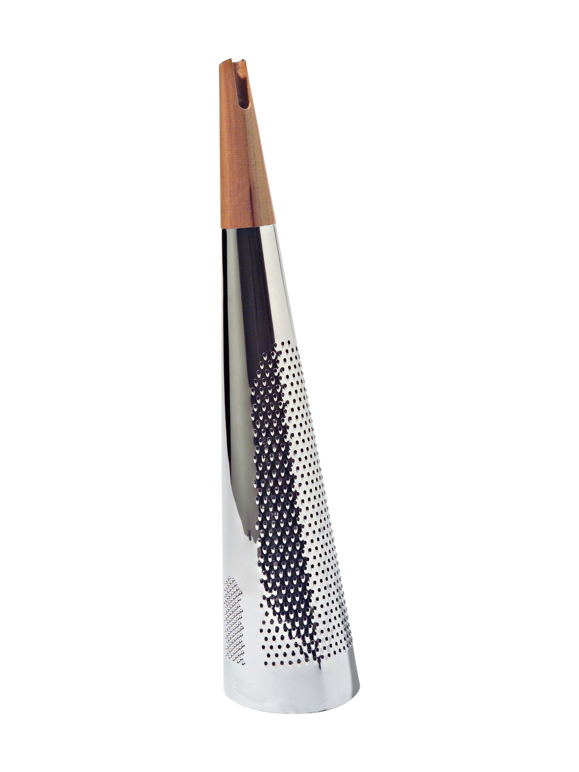 Diese Reibe ist ein edles Präsentationsstück für die Küche oder den Esstisch und gleichzeitig ein hervorragendes Beispiel für ein Objekt, das eine präzise, innovative und funktionelle Leistung erbringt und eine Tätigkeit, die als notwendiges Übel gilt und allgemein unbeliebt ist, in eine fast spielerische Geste zu verwandeln weiss.
