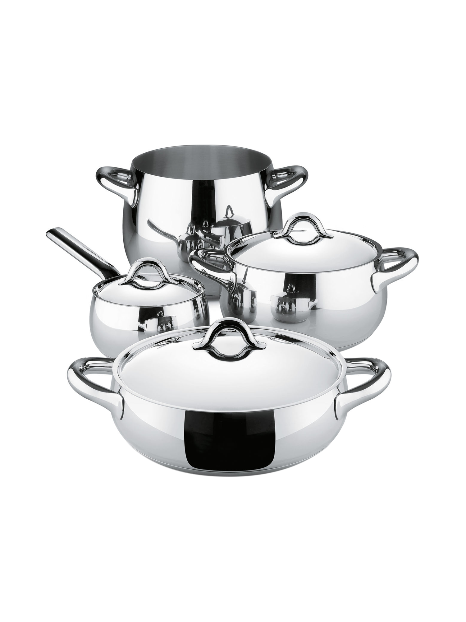 Das Topf-Set Mami von Alessi überzeugt mit seinen sanften Rundungen, die ihm eine elegante, feminine Note verleihen. Der hochwertige, rostfreie Edelstahl sorgt für eine optimale Wärmeverteilung und ermöglicht geschmacks- und aromaintensives Kochen. Die weiche Formsprache und der glänzende Edelstahl bringen klassische Eleganz auf den Herd – ideal für anspruchsvolle Köche und Designliebhaber.