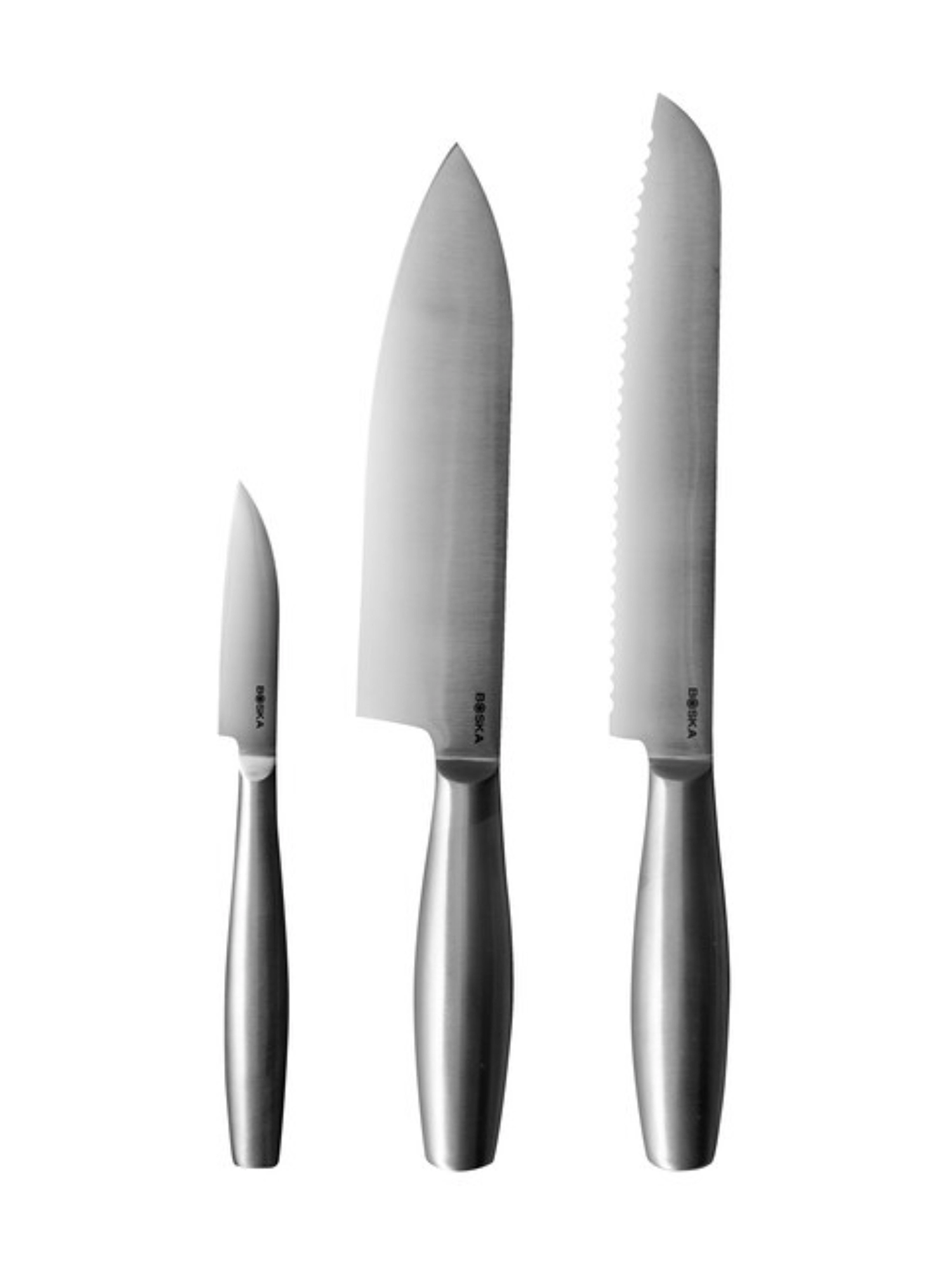 Schneiden Sie mit den Küchenmessern Copenhagen jede Art von Lebensmitteln mühelos. Dieses Set aus 3 scharfen und unverzichtbaren Messern bietet ein einzigartiges Design und besteht vollständig aus rostfreiem Stahl. Die Messer sind leicht, spülmaschinengeeignet und verfügen über ergonomische Griffe für vielseitige Schneidetechniken bei allen Arten von Lebensmitteln. Ein Set, das ein Leben lang hält.
