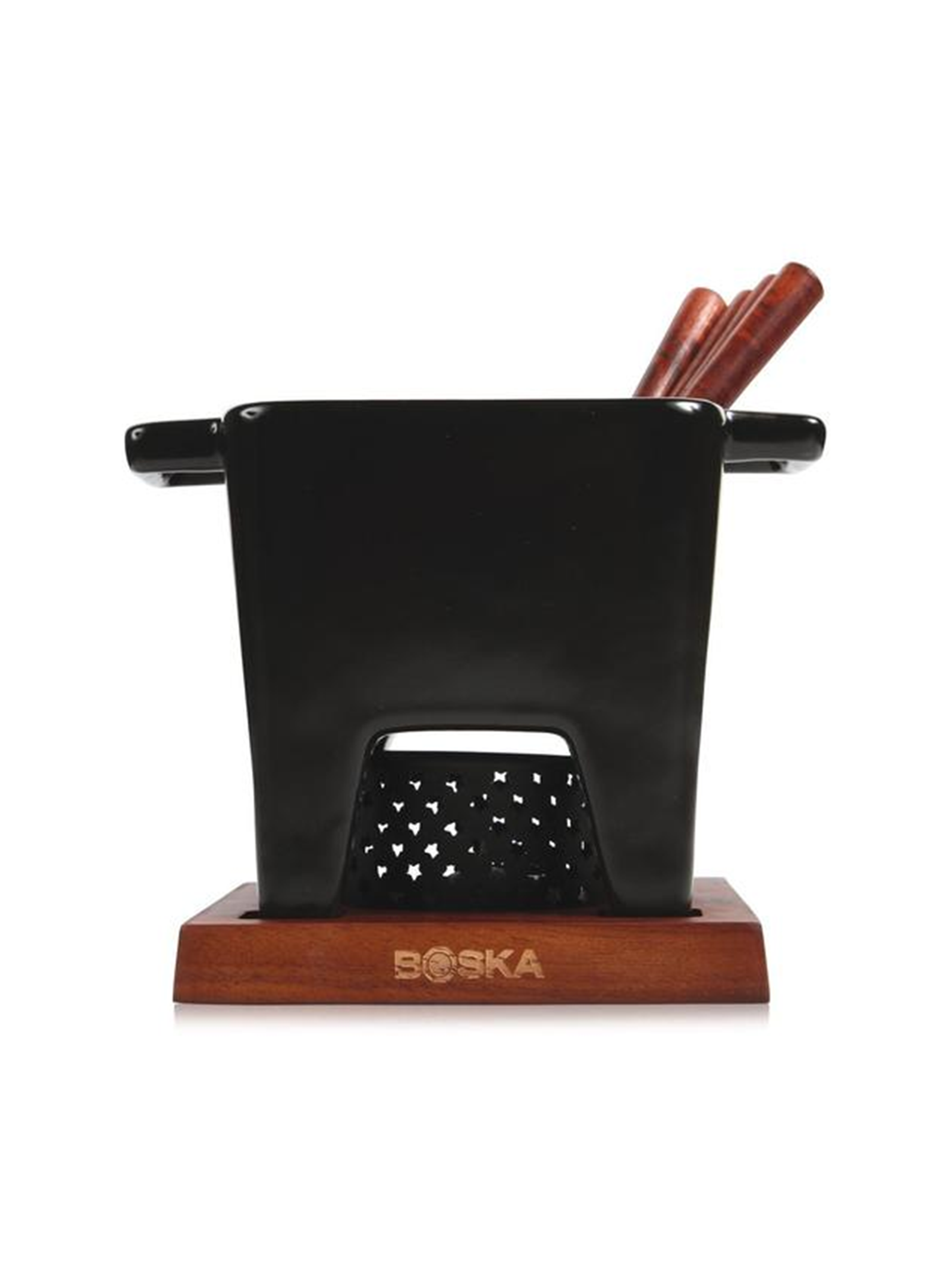 Das ultimative Tapas-Erlebnis wartet auf Sie. Mit diesem Fondue-Set erhalten Sie die essentiellen Utensilien, die Sie für köstliche Tapas-Gerichte in einer warmen und gemütlichen Atmosphäre benötigen. Den Käse können Sie einfach in dem quadratischen Fonduetopf aus Keramik mit einem Fassungsvermögen von 200 und 400 Millilitern schmelzen. Anschliessend tauchen Sie und Ihre Gäste noch Ihre Lieblingszutaten ein und fertig ist ein magisches Menü. Der Topf lässt sich in der Spülmaschine oder noch besser per Hand sorgfältig reinigen und schnell bei der nächsten Party, beim Picknick oder beim romantischen Tapas-Abend zu zweit zum Einsatz kommen.