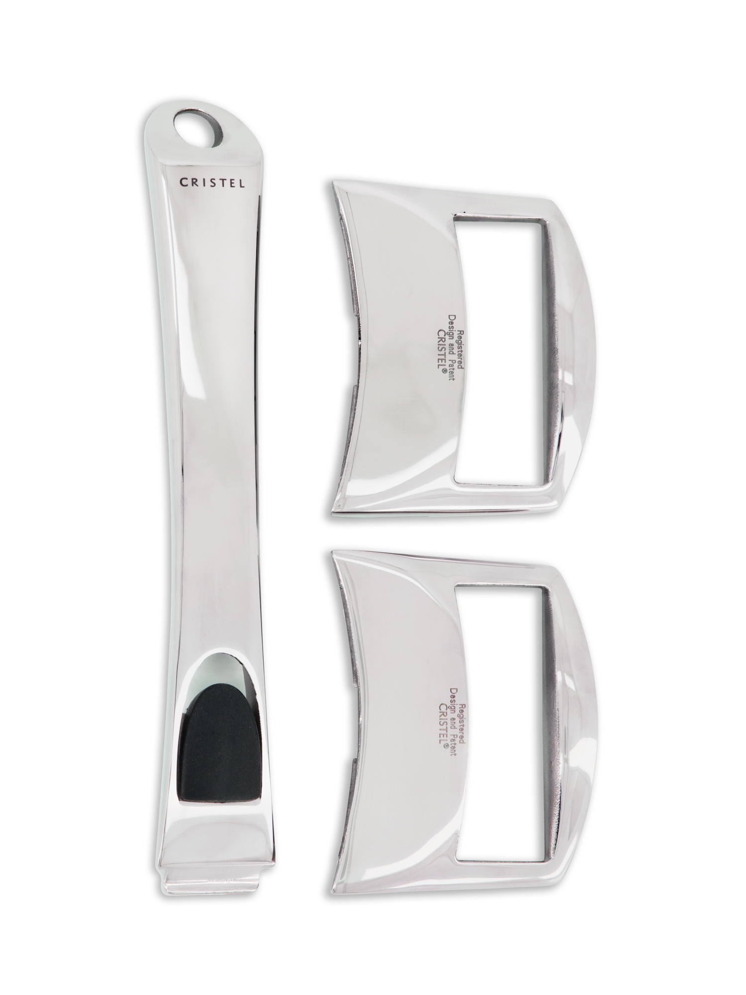 - Dreiteiliges Set mit zwei austauschbaren Seitengriffen und einem Stielgriff der Linie Strate aus der Casteline Amovible Kollektion von Cristel