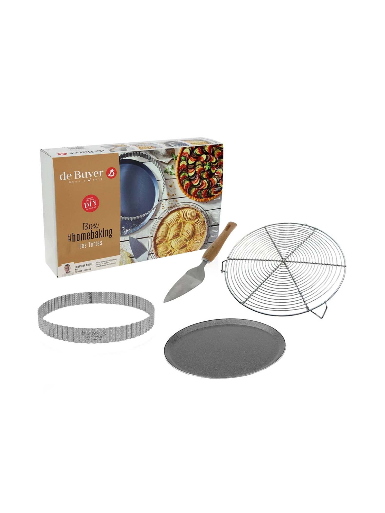 Das Homebaking-Set ist das perfekte Zubehör für alle Backliebhaber, die ihre Backkunst perfektionieren möchten. Mit hochwertigen Backutensilien für eine optimale Wärmeleitung und ein perfektes Ergebnis – von knusprigen Tortenböden bis hin zu saftigen Kuchen. Das Set enthält zudem Tipps und Rezepte vom MOF-zertifizierten Konditor Jonathan Mougel.