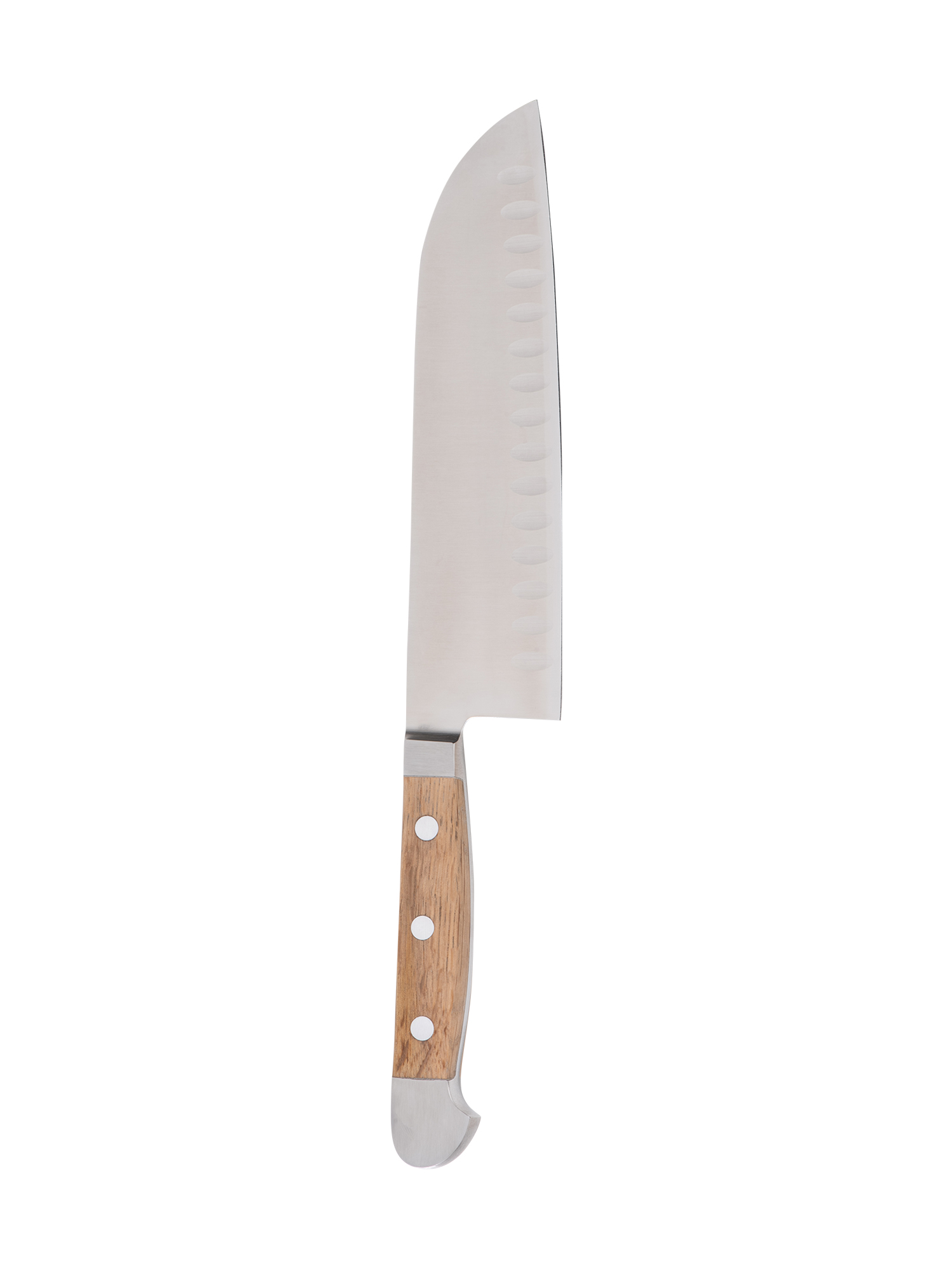 - Vielseitiges Santoku Messer mit Kullenschliff aus der Serie Alpha Fasseiche