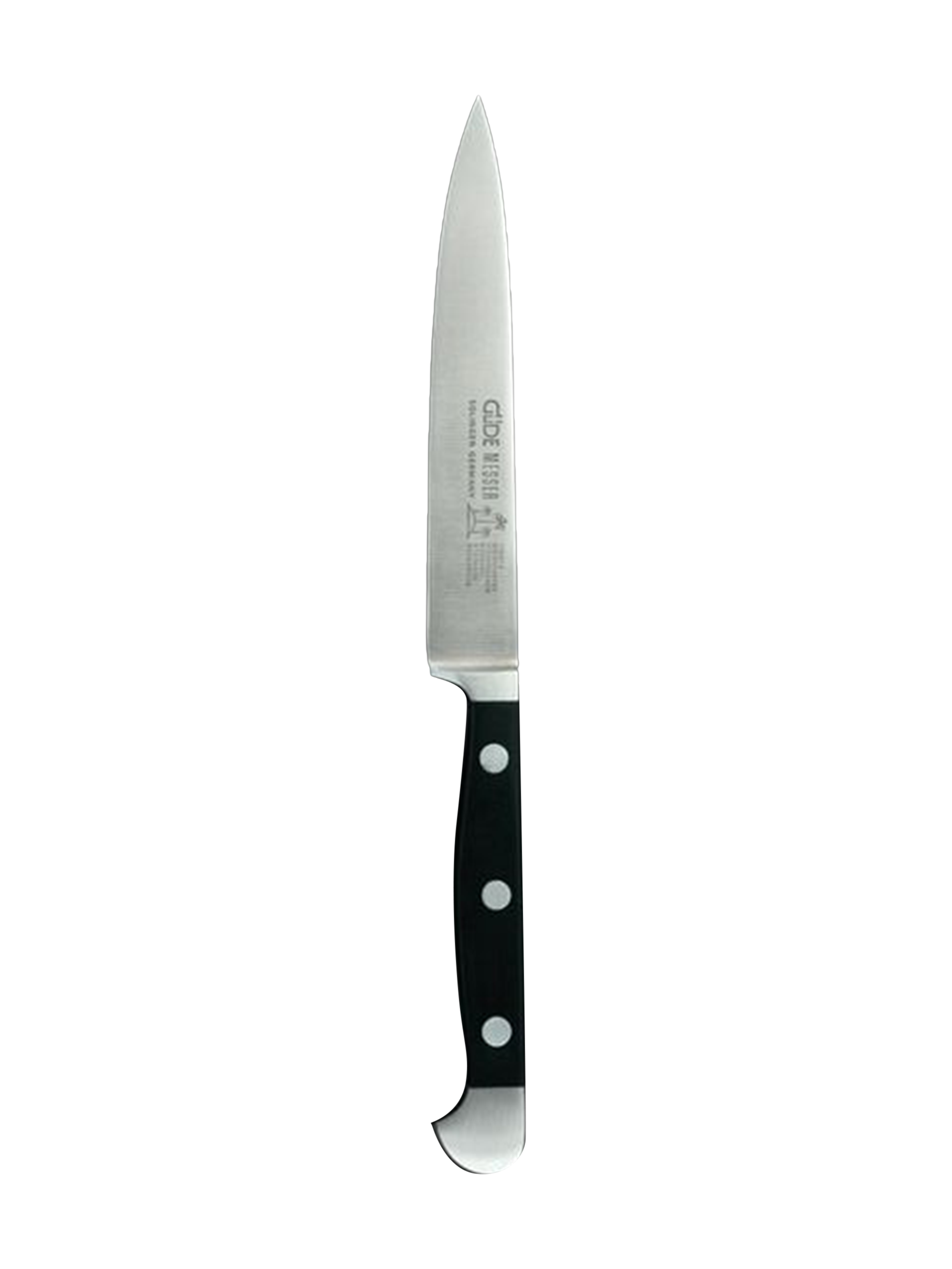 Das Güde Spickmesser / Allzweckmesser aus der Serie Alpha ist ein tolles Messer für viele Vorbereitungsarbeiten in der Küche. Die mittelspitze, 13 cm lange Klinge des Messers ermöglicht das Putzen, Schälen und Schneiden von Obst, Gemüse, Zwiebeln und Kräutern, wobei die Vielseitigkeit dieses Messers sprichwörtlich ist. Die handgefertigte Klinge des Güde Spickmessers ist aus einem Stück Chrom-Vanadium-Molybdän Messerstahl gefertigt, der rostfrei, eisgehärtet und handgeschärft ist.