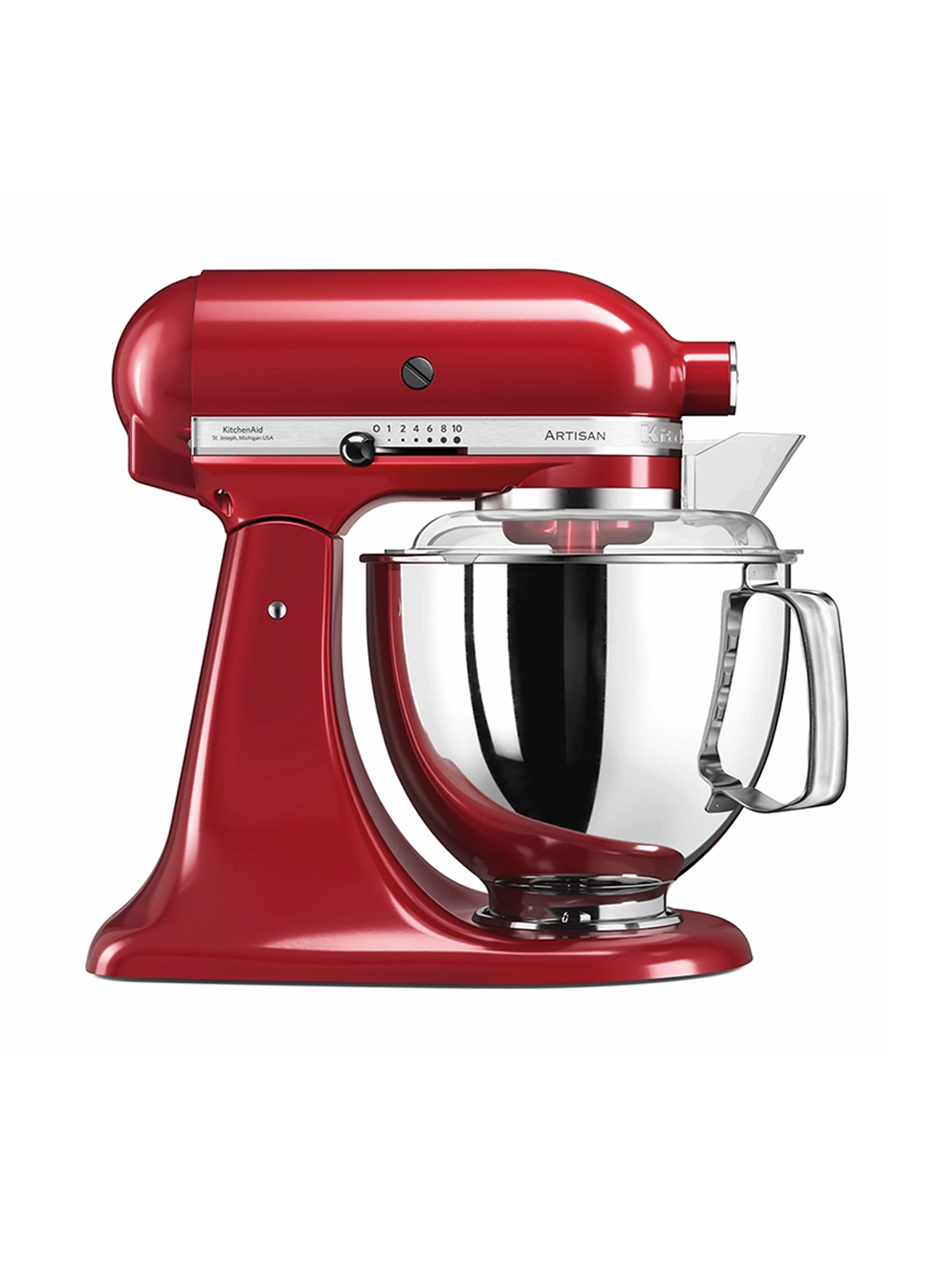 - Enthält Standardzubehör: 4.8 l Edelstahlschüssel, Schneebesen, Knethaken, Flachrührer, Flachrührer mit Schaber, Spritzschutz mit Einfüllschütte