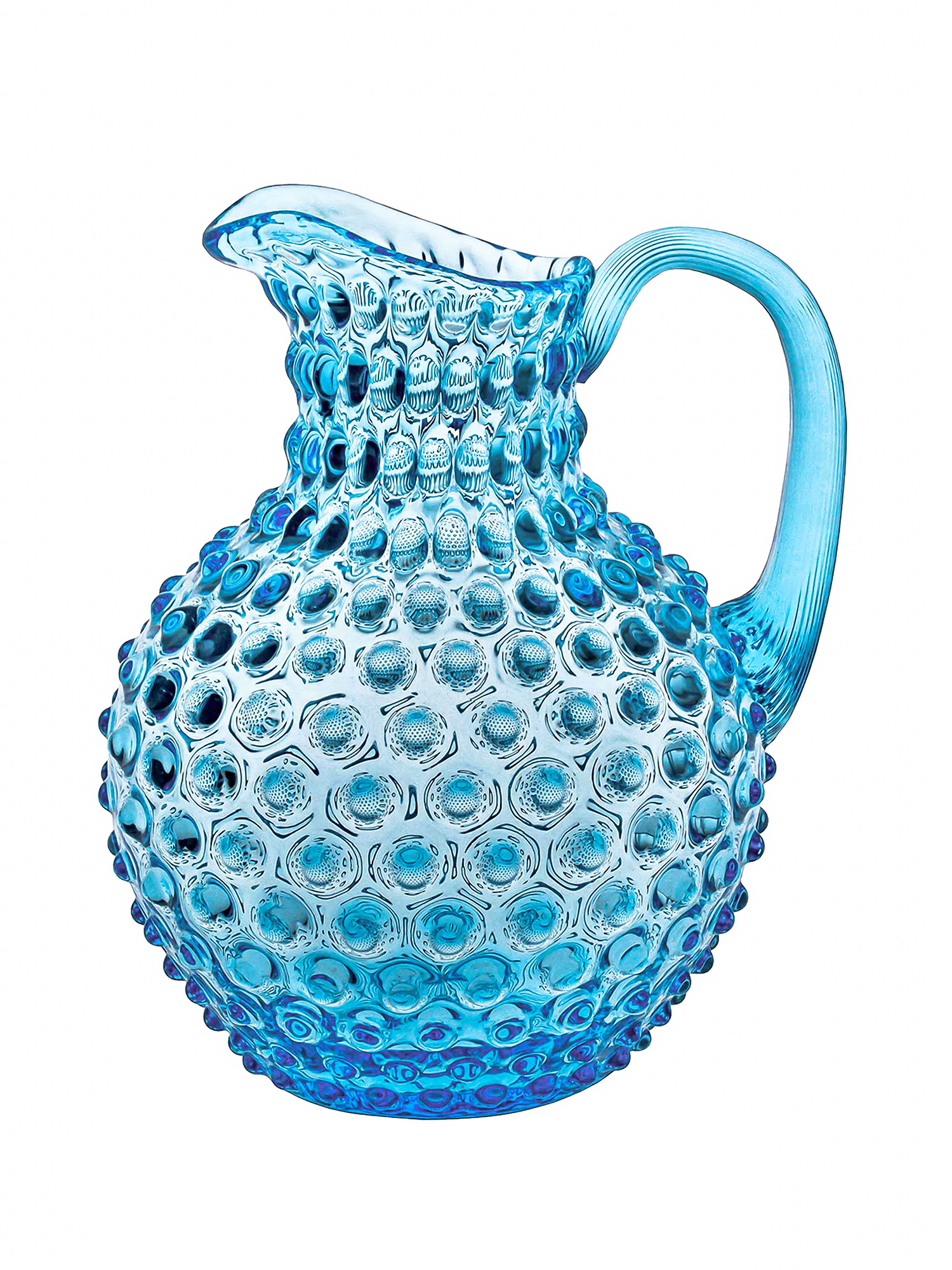 Der Hobnail Krug von Klimchi wurde in einer tschechichen Manufaktur Mundgeblasen und ist ein echter Blickfang. Er hat ein Fassungsvermögen von bis zu 2 Litern und ist in verschiedenen Farben erhältlich. Mit seiner kompakten Form und dem konisch zulaufenden Griff ist der Krug leicht zu handhaben und angenehm zu greifen. Ausserdem verhindert er, dass Eiswürfel in Ihr Getränk rutschen und er ist auch als ausgefallene Vase einsetzbar.