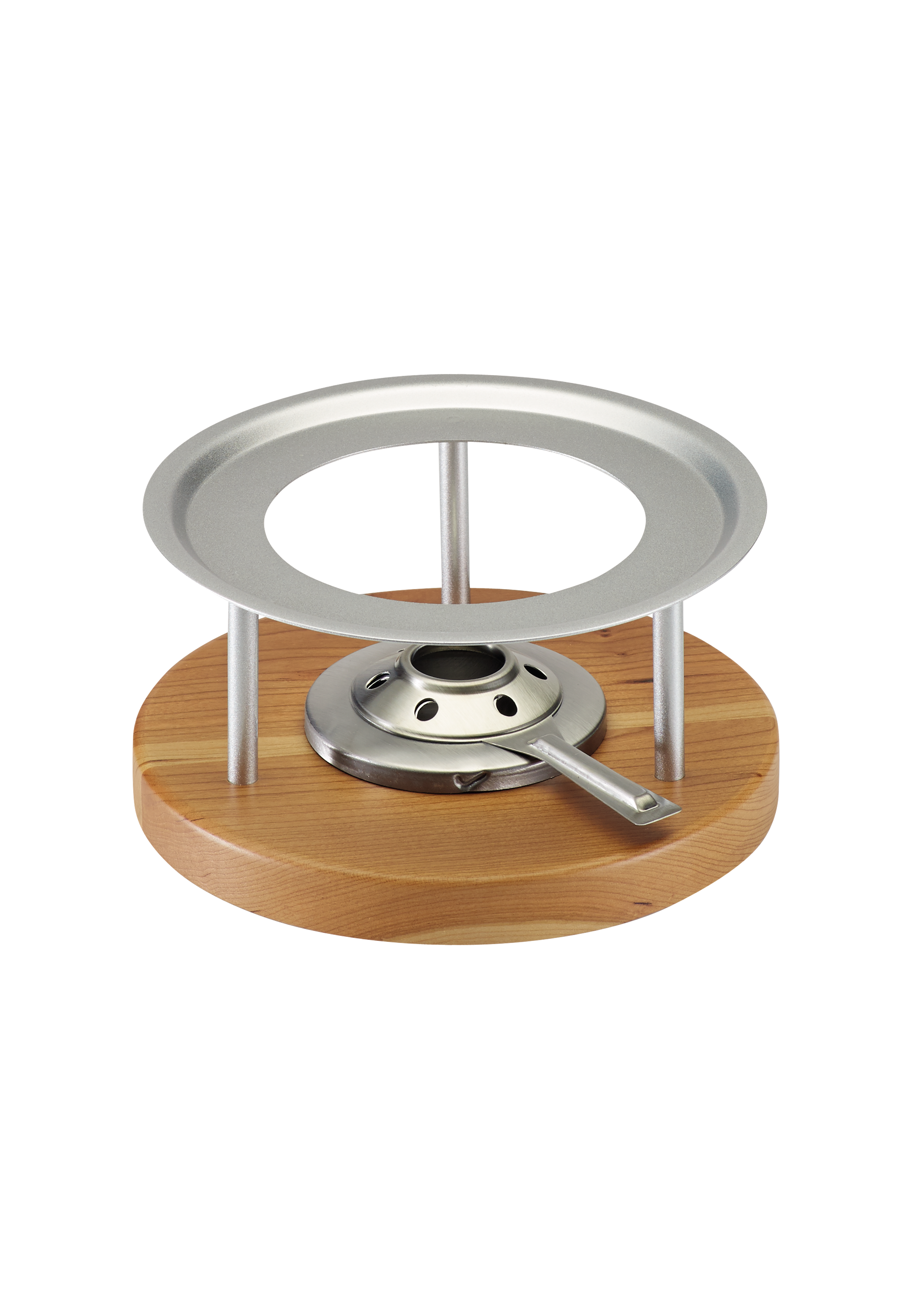 - Rechaud mit schlichtem Design und hochwertigem Kirschholzsockel.