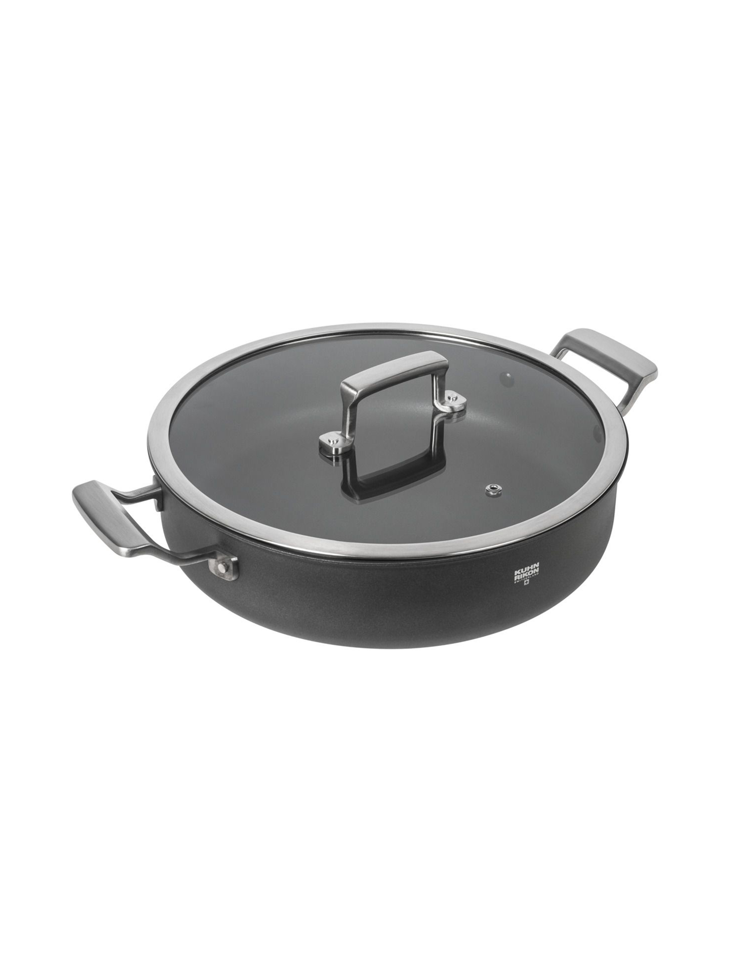Statten Sie Ihre Küche mit umweltbewusstem Kochgeschirr aus der Serie New Life Pro Recycling von Kuhn Rikon aus. Mit der Servierpfanne aus der Serie sichern Sie sich ein vielseitiges Utensil, das optimal für schonendes Anbraten von Fleisch, Gemüse, Kartoffeln und Eierspeisen ist. Die Servierpfanne besteht zu 100 Prozent aus recyceltem Aluminium aus Europa und wird mit bis zu 95 Prozent weniger Energieaufwand als herkömmliches Kochgeschirr hergestellt. Das hochwertige Recycling-Aluminium ist ausserdem härter als reines Aluminium, da es aus verschiedenen Aluminiumlegierungen vereint wird. In Kombination mit einem dicken Boden inklusive vollflächiger Induktionsronde verteilt sich die Wärme gleichmässig und wird ebenso gut gespeichert. Durch die keramisch hoch verstärkte dreilagige Antihaftbeschichtung klebt beim Braten nichts an. Bereiten Sie leckere Saucen und Schmorgerichte darin zu und servieren Sie sie mit der formschönen Pfanne direkt am Tisch. Die ergonomischen Seitengriffe aus Edelstahl bleiben kühl – so gestaltet sich das Handling angenehm. Mit dabei ist ebenso ein Glasdeckel mit Dampföffnung, der bequemes Sichtkochen ermöglicht und gleichzeitig ein Festsitzen des Deckels beim Abkühlen verhindert. Leicht zu reinigende Servierpfanne, für alle Herdarten geeignet – auch für Induktion – sowie bis 240 °C backofentauglich.