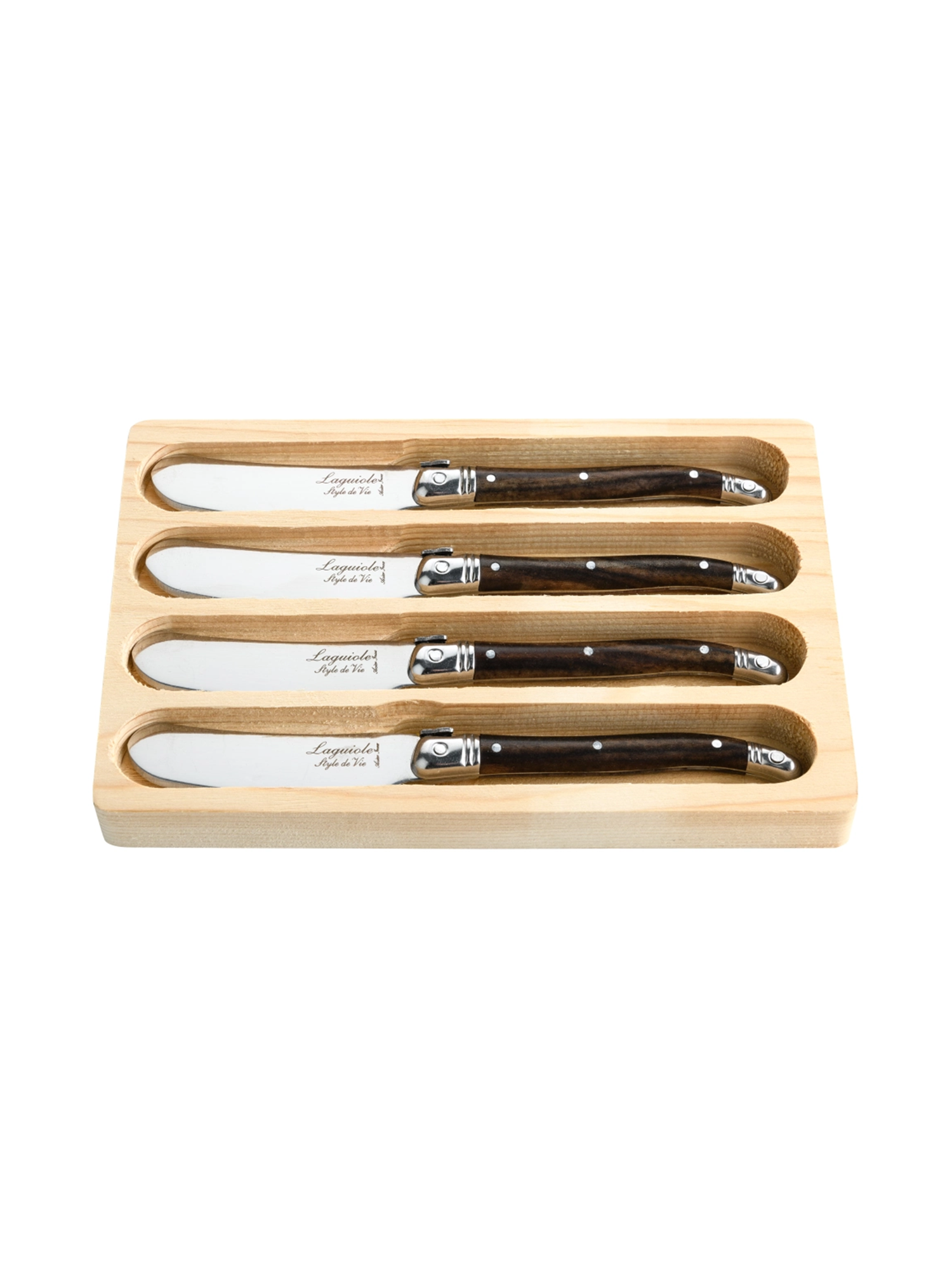 Das 4-teilige Buttermesser-Set Wood vereint elegantes Design mit praktischer Funktion. Die Griffe in stilvoller Holzoptik liegen angenehm in der Hand und ermöglichen müheloses Streichen von Butter, Aufstrichen oder Dips.
