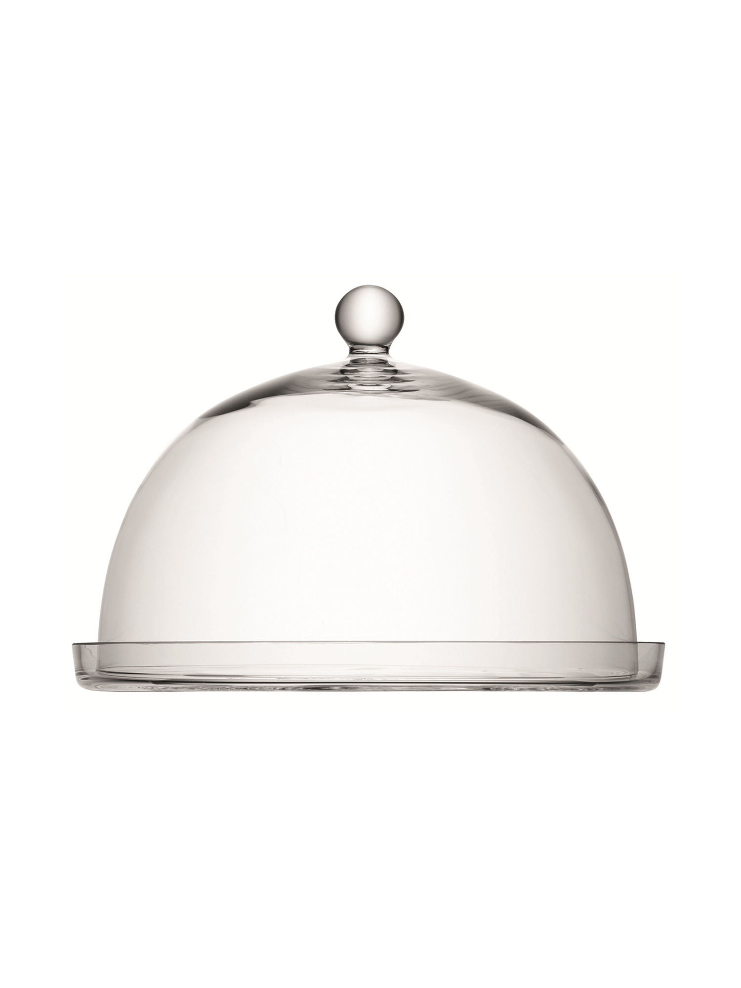 Ein einzigartiger, mundgeblasene Glashaube mit einer breiten, klaren Glasplatte und einem runden Henkel. Perfekt zum Servieren von elegantem Käse oder Kuchen.