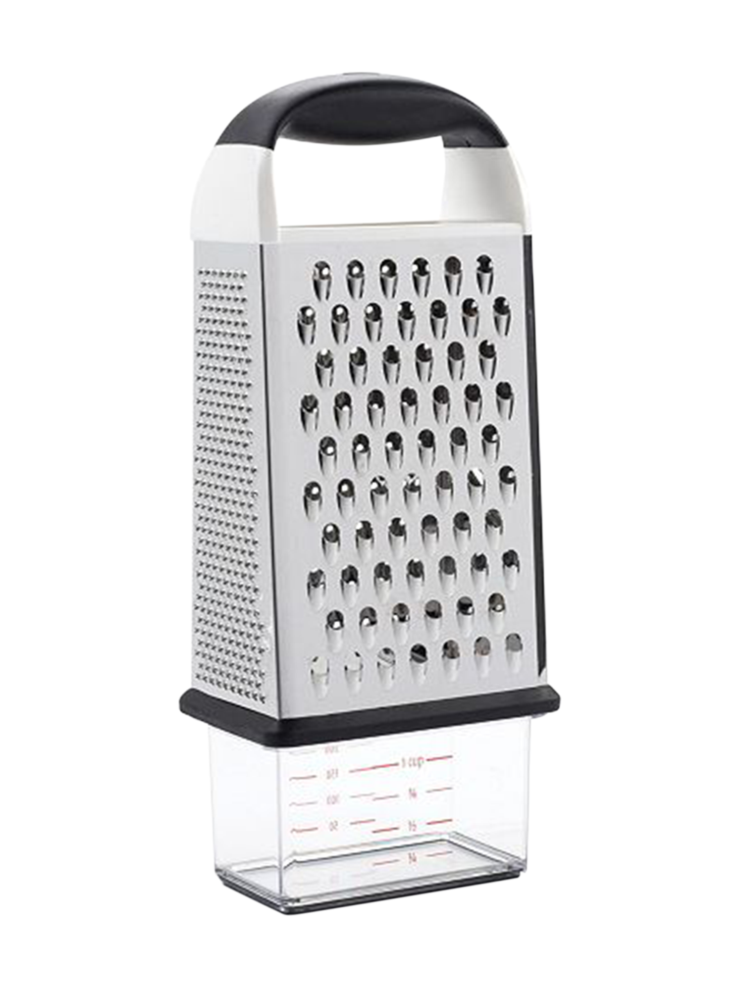 Die 4-seitige Reibe mit Behälter ist perfekt für alle Ihre Reibeanforderungen und verfügt über 3 verschiedene Reiben. Der breite Behälter kann zum Sammeln, Abmessen und Aufbewahren der geriebenen Lebensmittel verwendet werden. Dieser Behälter ist außerdem spülmaschinenfest, was ihn für den täglichen Gebrauch sehr praktisch macht.