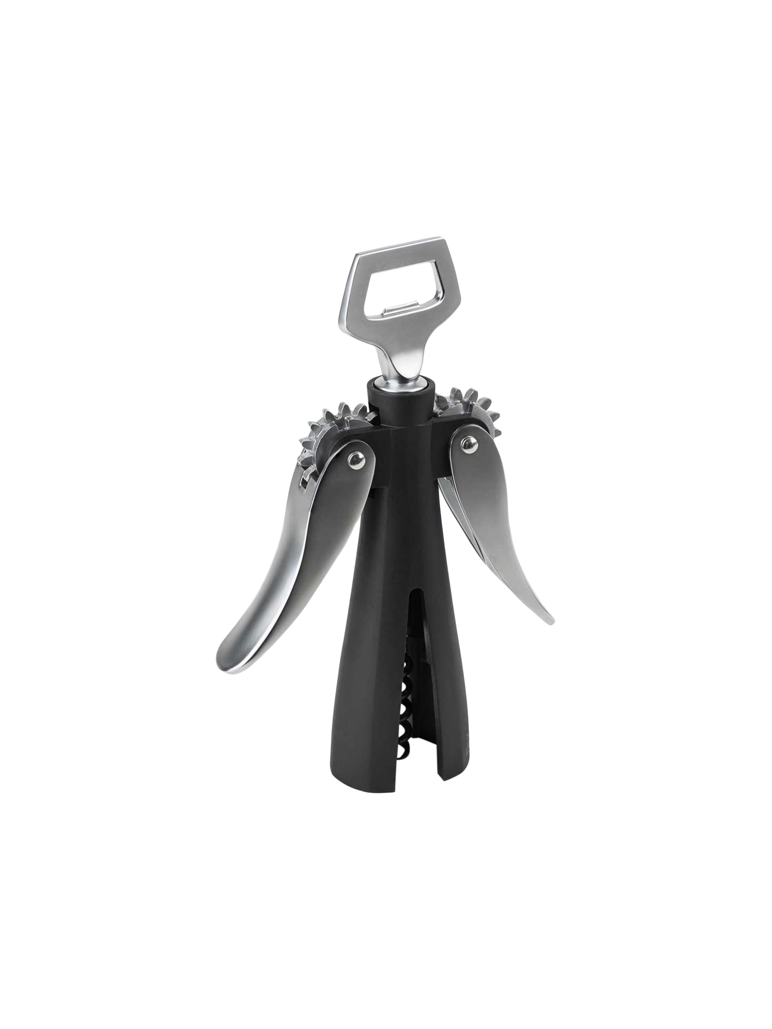 - Patentiertes Flügelsystem: Spindel schraubt sich automatisch in den Korken, während die Hebel am Flaschenkörper anliegen.