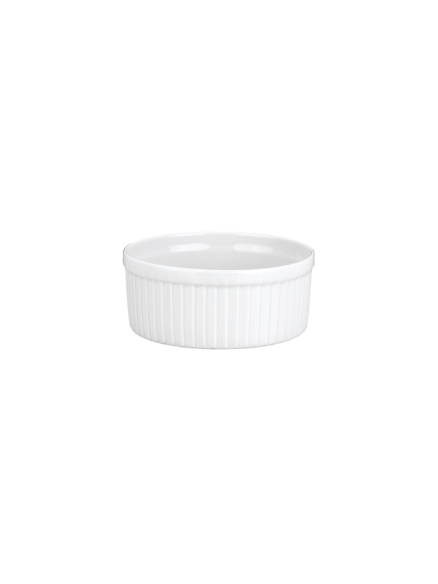 - Runde Form mit glatter, weisser Oberfläche, erleichtert das Herauslösen des Soufflés