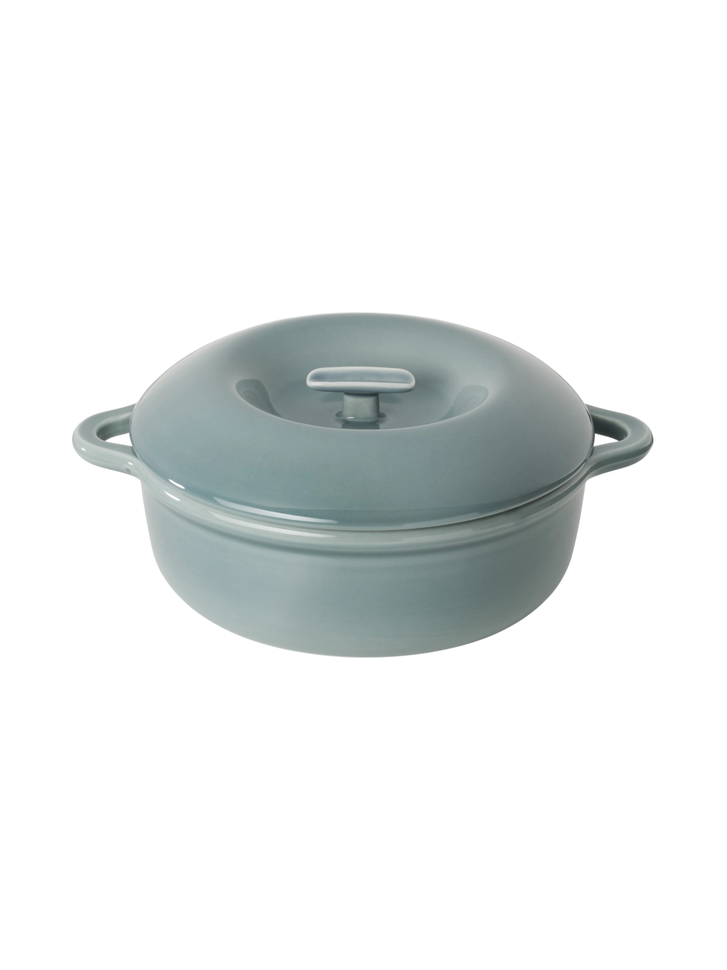 Die Kasserolle zeichnet sich durch ihre markante, umlaufende Wölbung aus, die nicht nur für ein einladendes, rundes Erscheinungsbild sorgt, sondern auch in die robusten Ein-Griff-Henkel übergeht. Der Deckel verfügt über eine integrierte „Pool“-Vertiefung, die den Griff schützt, und Innen-Noppen, die Kondensation gleichmässig verteilen, damit die Gerichte saftig bleiben.