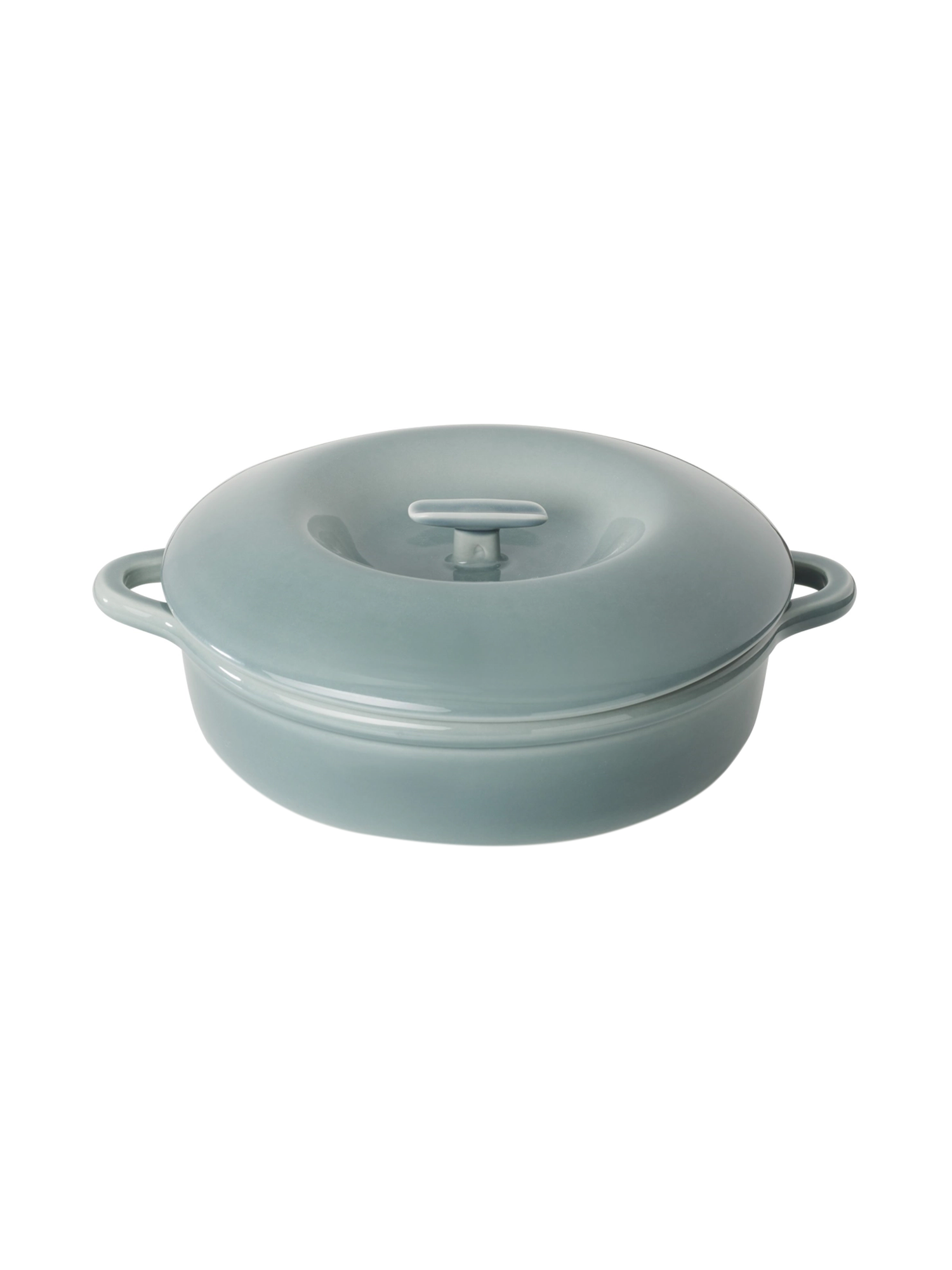 Die Kasserolle zeichnet sich durch ihre markante, umlaufende Wölbung aus, die nicht nur für ein einladendes, rundes Erscheinungsbild sorgt, sondern auch in die robusten Ein-Griff-Henkel übergeht. Der Deckel verfügt über eine integrierte „Pool“-Vertiefung, die den Griff schützt, und Innen-Noppen, die Kondensation gleichmässig verteilen, damit die Gerichte saftig bleiben.