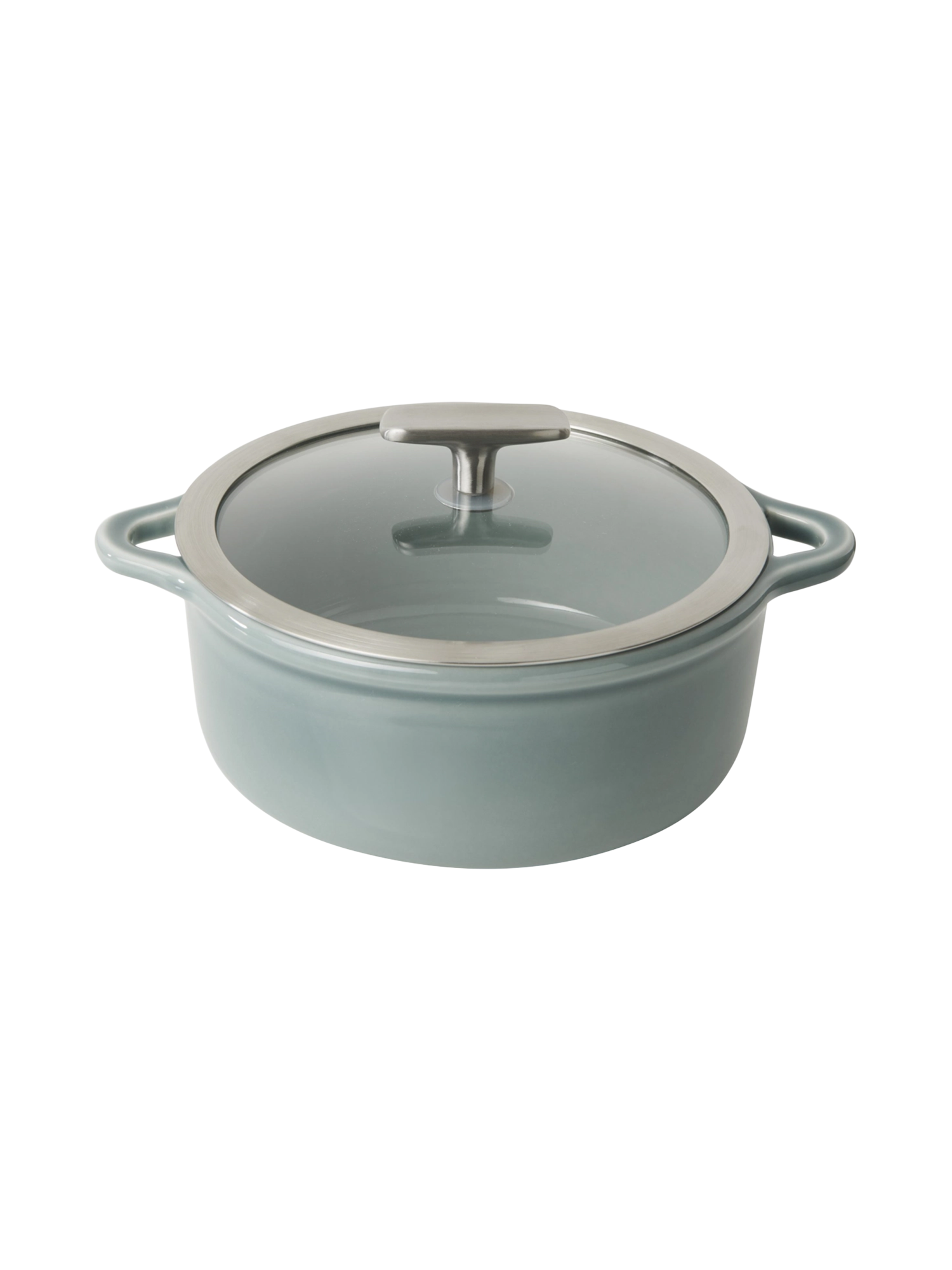 Ihr markantes Merkmal ist das umlaufende Band, das für eine runde, einladende Form sorgt und nahtlos in die robusten Ein-Griff-Henkel übergeht. Der Deckel verfügt über eine integrierte „Pool“-Vertiefung, die den Griff schützt, während innenliegende Noppen Kondenswasser gleichmässig verteilen – für saftige und aromatische Gerichte.
