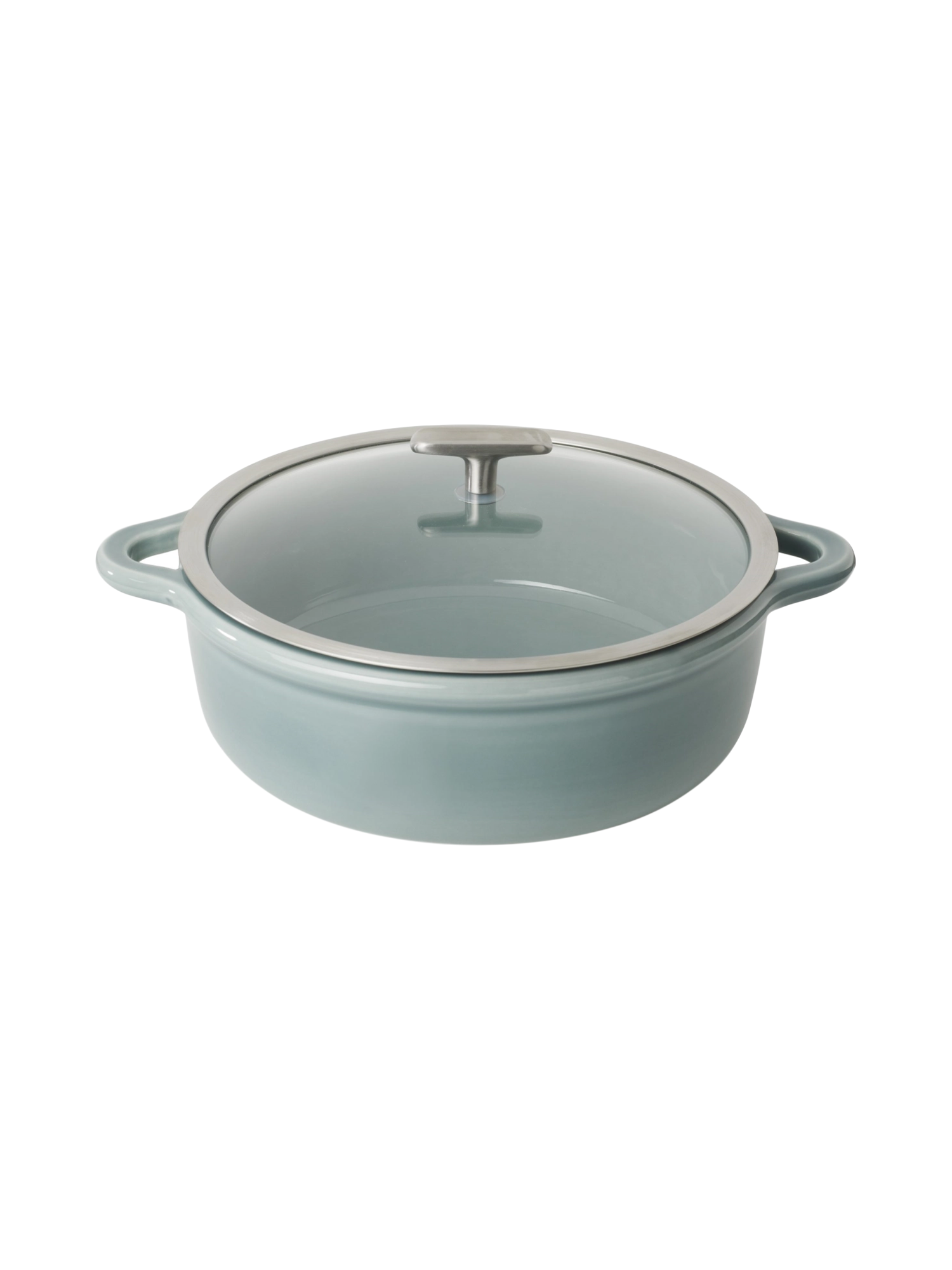 Ihr markantes Merkmal ist das umlaufende Band, das für eine runde, einladende Form sorgt und nahtlos in die robusten Ein-Griff-Henkel übergeht. Der Deckel verfügt über eine integrierte „Pool“-Vertiefung, die den Griff schützt, während innenliegende Noppen Kondenswasser gleichmässig verteilen – für saftige und aromatische Gerichte.