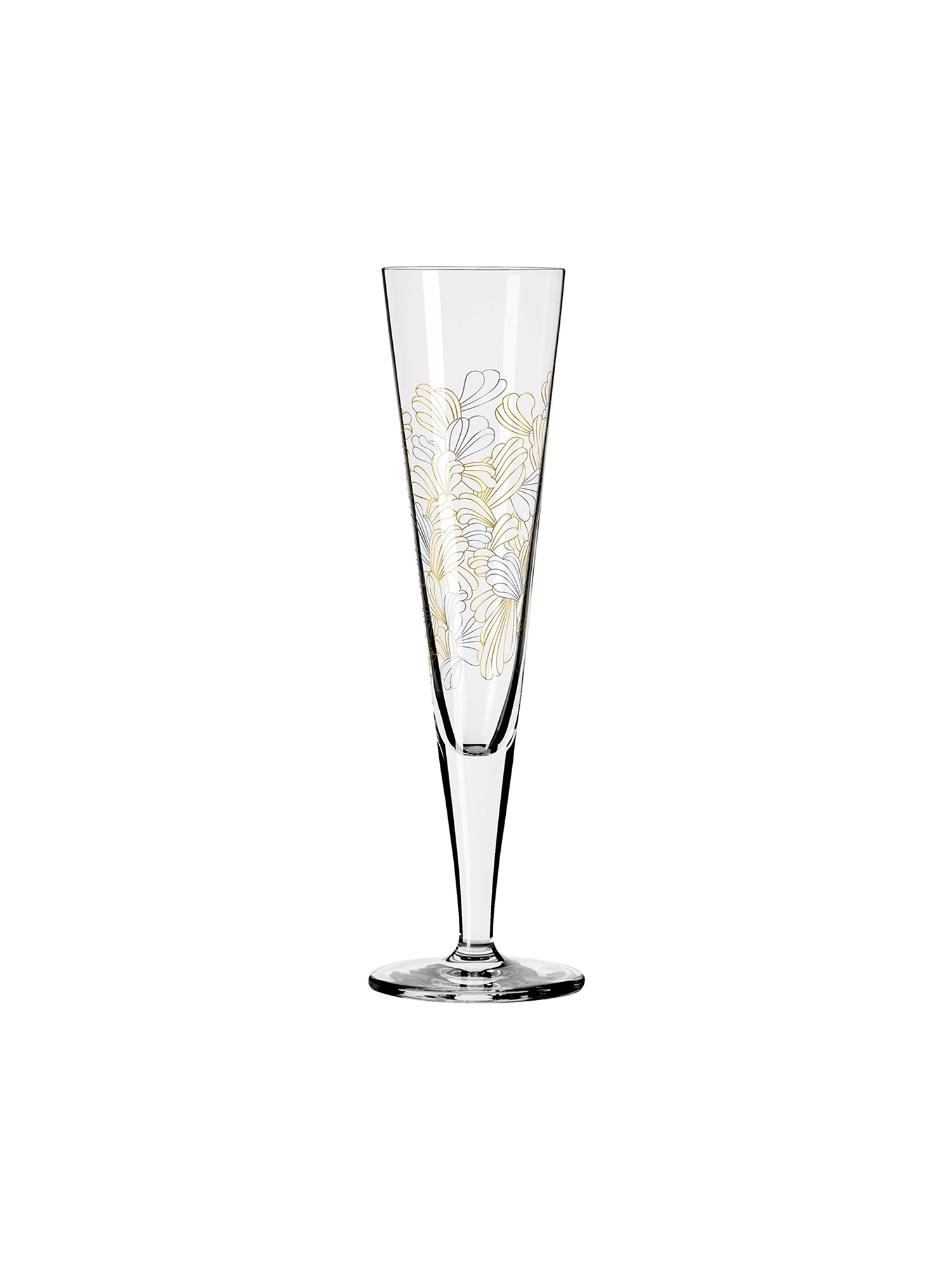 Das Champagnerglas „Die Sprache der Blumen“ verbindet kunstvoll die Silhouetten unzähliger Blütenblätter zu einem blühenden Blumenmeer, das je nach Blickwinkel die Sinne immer wieder neu inspiriert.