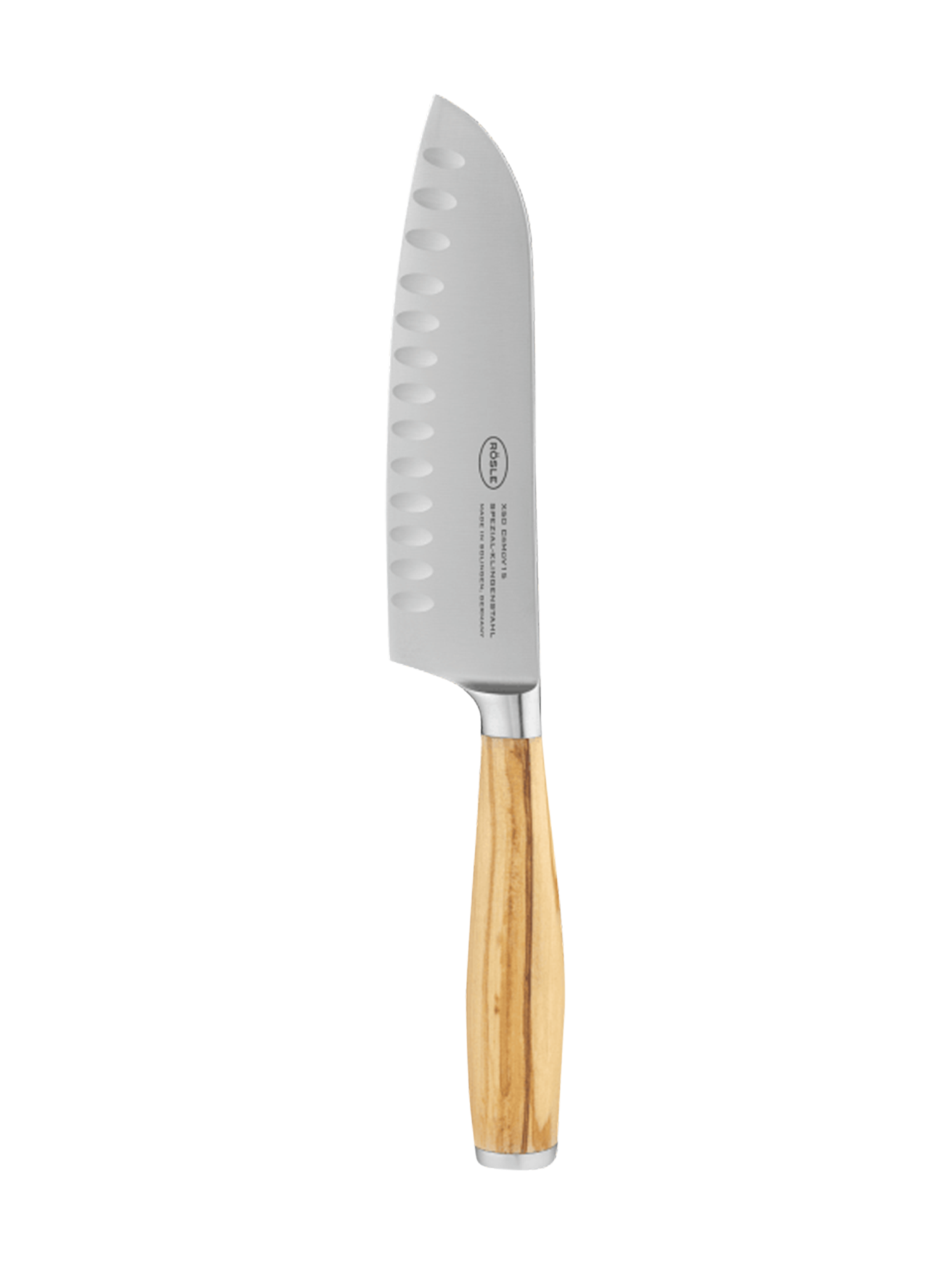 Unser Fleischmesser ist speziell für die Zubereitung von Fleisch und das Tranchieren aller Fleischarten konzipiert. Der ausgewählte Olivenholzgriff aus Italien ist von Natur aus hart, langlebig und liegt besonders angenehm in der Hand. Jedes Messer ist ein Unikat aufgrund seiner individuellen Maserung und somit etwas ganz Besonderes. Die hochwertige Endkappe enthält zudem eine Prägung des RÖSLE Logos. Die Klinge besteht aus Klingenspezialstahl X50CrMOV15 aus Solingen, der durch die Fertigung aus einem Stück eine lange Lebensdauer garantiert.