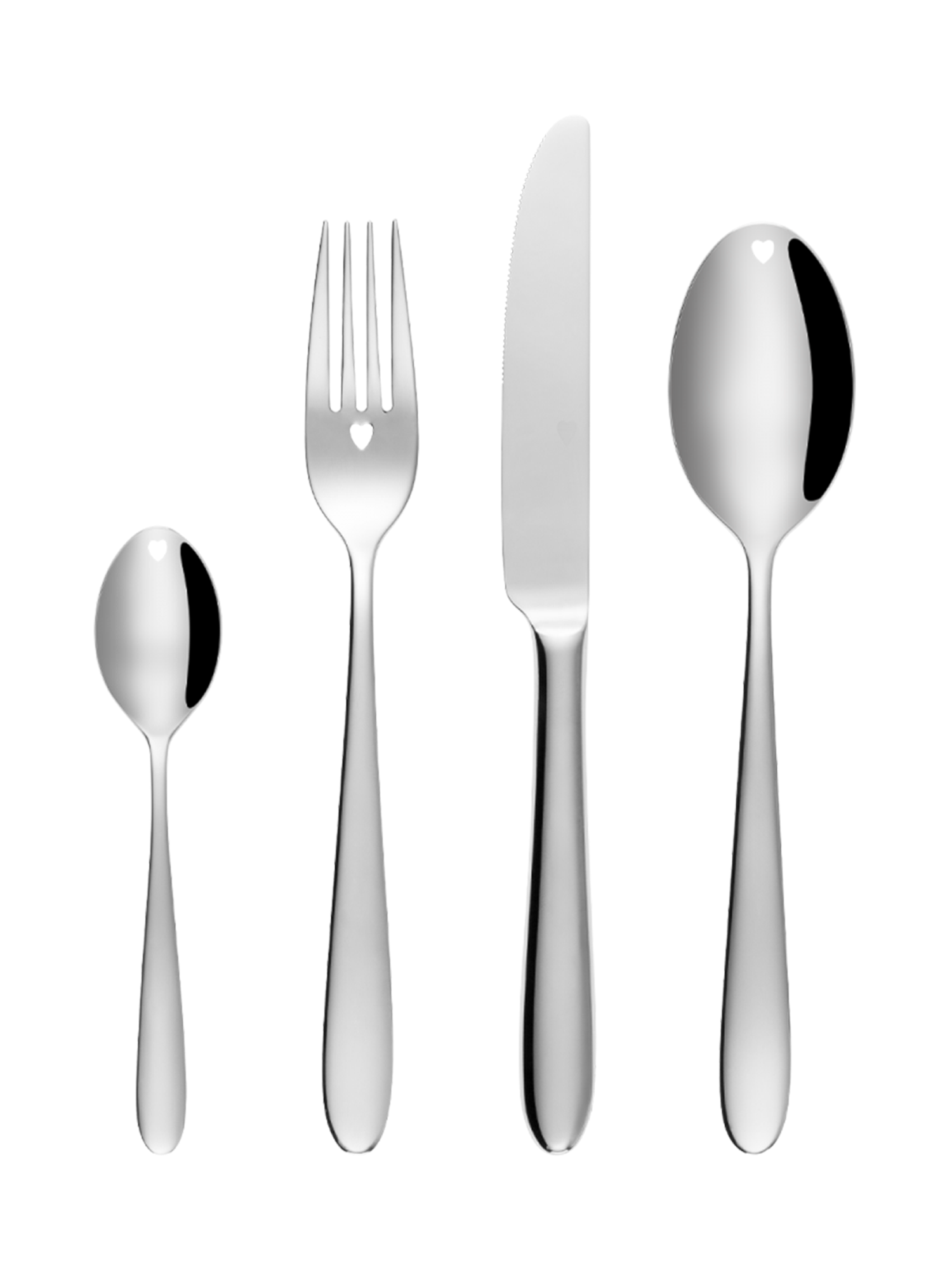 Die glänzende Alpha-Linie mit einem Herzausschnitt ist das perfekte Geschenk für dich oder deine Liebsten. Sie eignet sich für viele Anlässe wie Flitterwochen, Geburtstagsfeiern oder Jubiläen und bringt einen romantisch-eleganten Touch in dein Esszimmer. Das schlichte Design und die hohe Qualität des 18/10-Edelstahls garantieren dir lange Freude an diesem 54-teiligen Set, das bei alltäglichen sowie festlichen Anlässen zum Einsatz kommt.