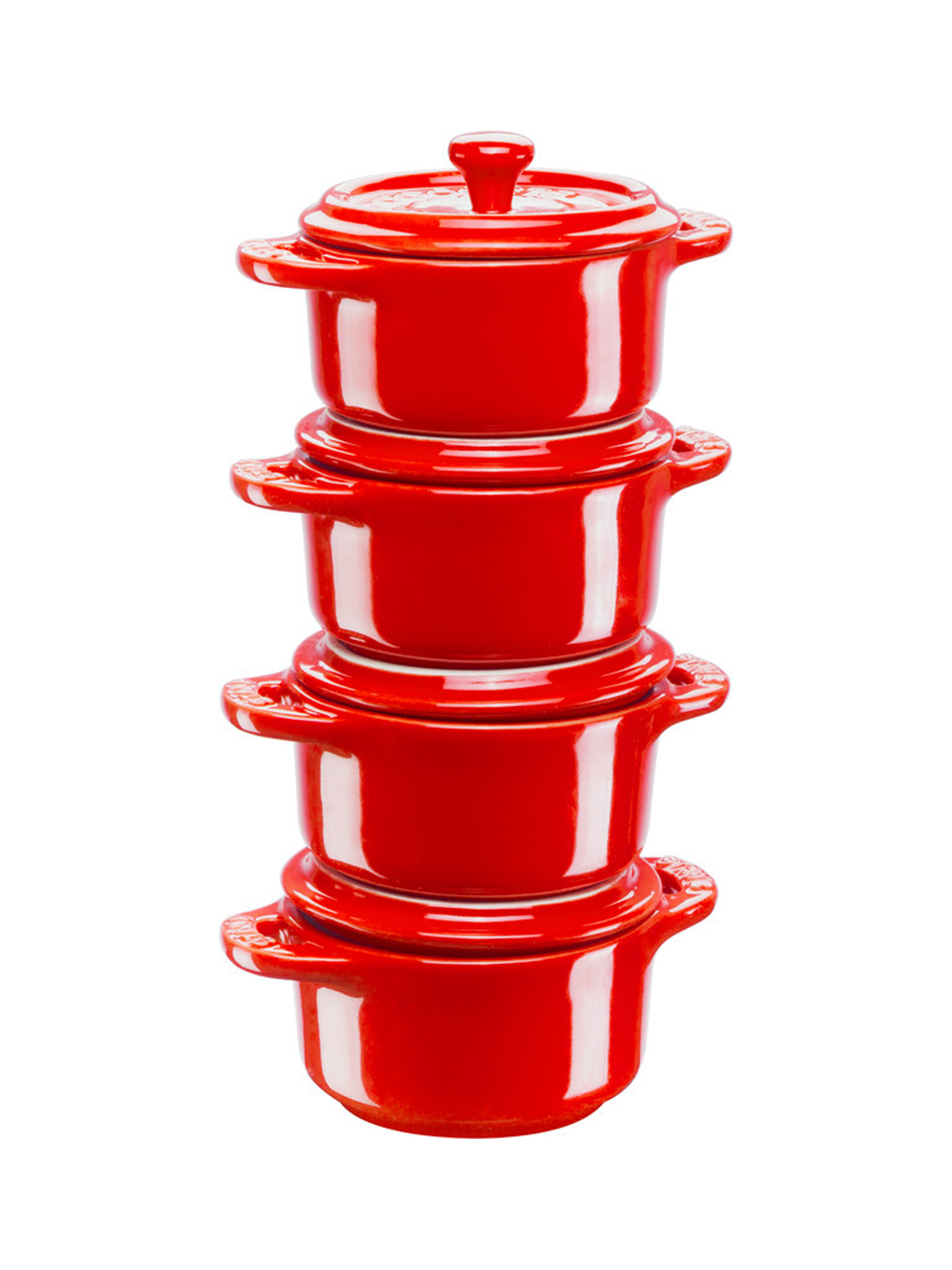 Ob süsse oder herzhafte Gerichte - mit diesem Mini Schmortopf 4er Set können Sie verschiedenste einzelne und kleine Speisen oder Desserts zubereiten, und davon sogar mehrere gleichzeitig. Die hochwertige Keramik sorgt für eine gleichmässige Wärmeverteilung und -übertragung für ein optimales Garen Ihrer Lebensmittel. Das spätere Reinigen per Hand oder in der Spülmaschine gestaltet sich dank der emaillierten Oberfläche äusserst leicht. Und die frische Kirschfarbe sorgt sogar für ein optisches Highlight sowie einen ansprechenden farblichen Kontrast in Ihrer Küche. Überraschen Sie mit diesem Set Freunde und Familie mit besonderen kleinen Köstlichkeiten.
