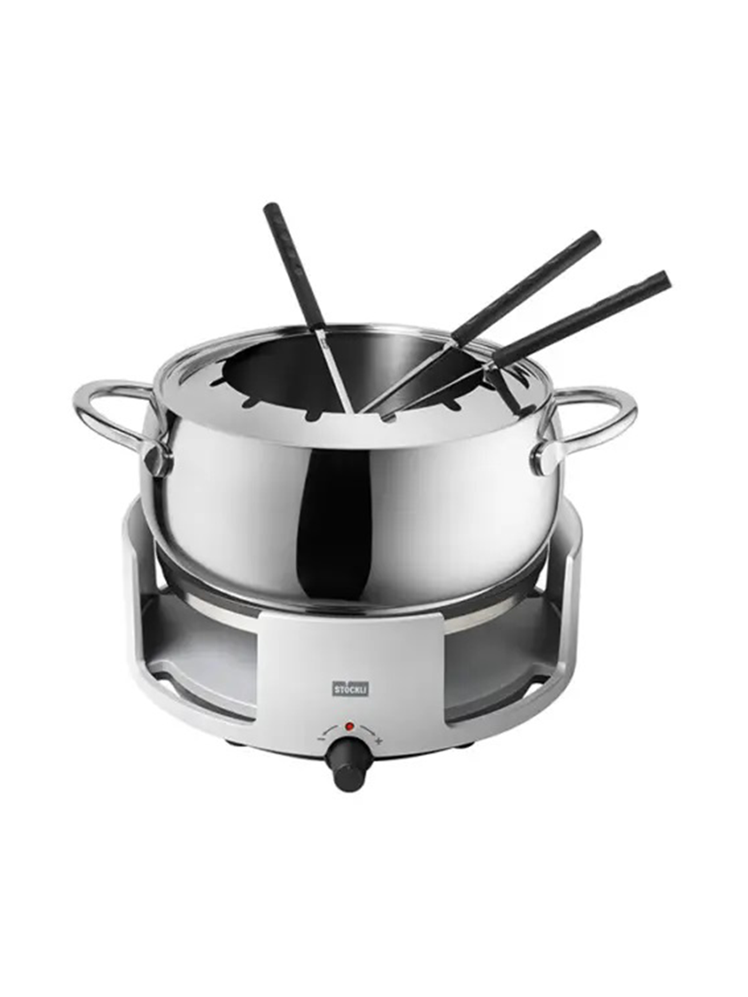 - Induktionsfähiger Fonduetopf aus poliertem Edelstahl mit 3 Litern Fassungsvermögen.