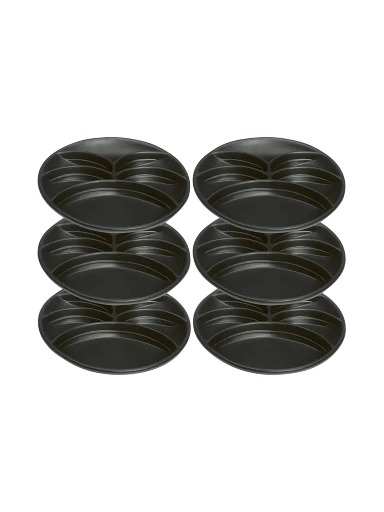 Sechs hochwertige Fondueteller aus Keramik. Die praktische Unterteilung in fünf kleine und ein großes Fach sorgt dafür, dass alles am richtigen Platz bleibt. Die Optik ist matt schwarz, also ein klasssisches und zeitloses Design.