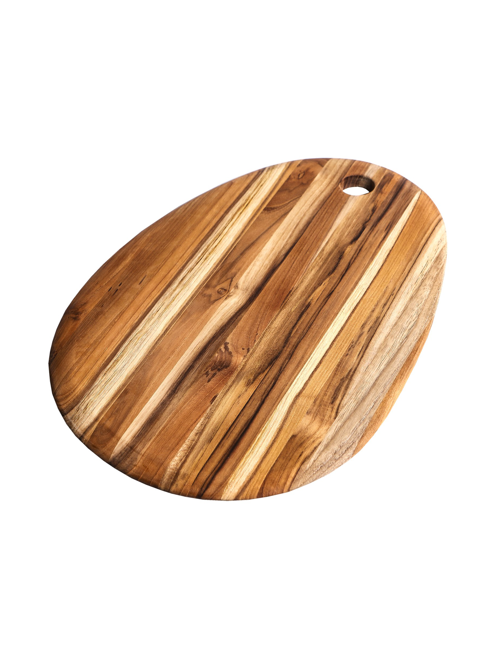 Dieses Schneide- und Servierbrett ist das perfekte Accessoire für jeden Haushalt, der grossen Wert auf Qualität und Eleganz legt. Hergestellt aus hochwertigem Teakholz, bietet dieses Utensil eine perfekte Kombination aus Schönheit und Funktionalität. Es lässt sich zum Schneiden von Obst, Gemüse, Fleisch oder anderen Zutaten nutzen und eignet sich ideal zum Servieren von Snacks, Käse, Wurst, Brot und vielen weiteren Leckereien. Das Teakholz ist von Natur aus antibakteriell und schützt daher vor schädlichen Keimen und Bakterien. Das ovale Design mit Loch erlaubt es Ihnen, das Brett auch an der Wand aufzuhängen, um es zu verstauen. Ein schickes dekoratives Utensil, das viele praktische Anwendungszwecke erfüllt.