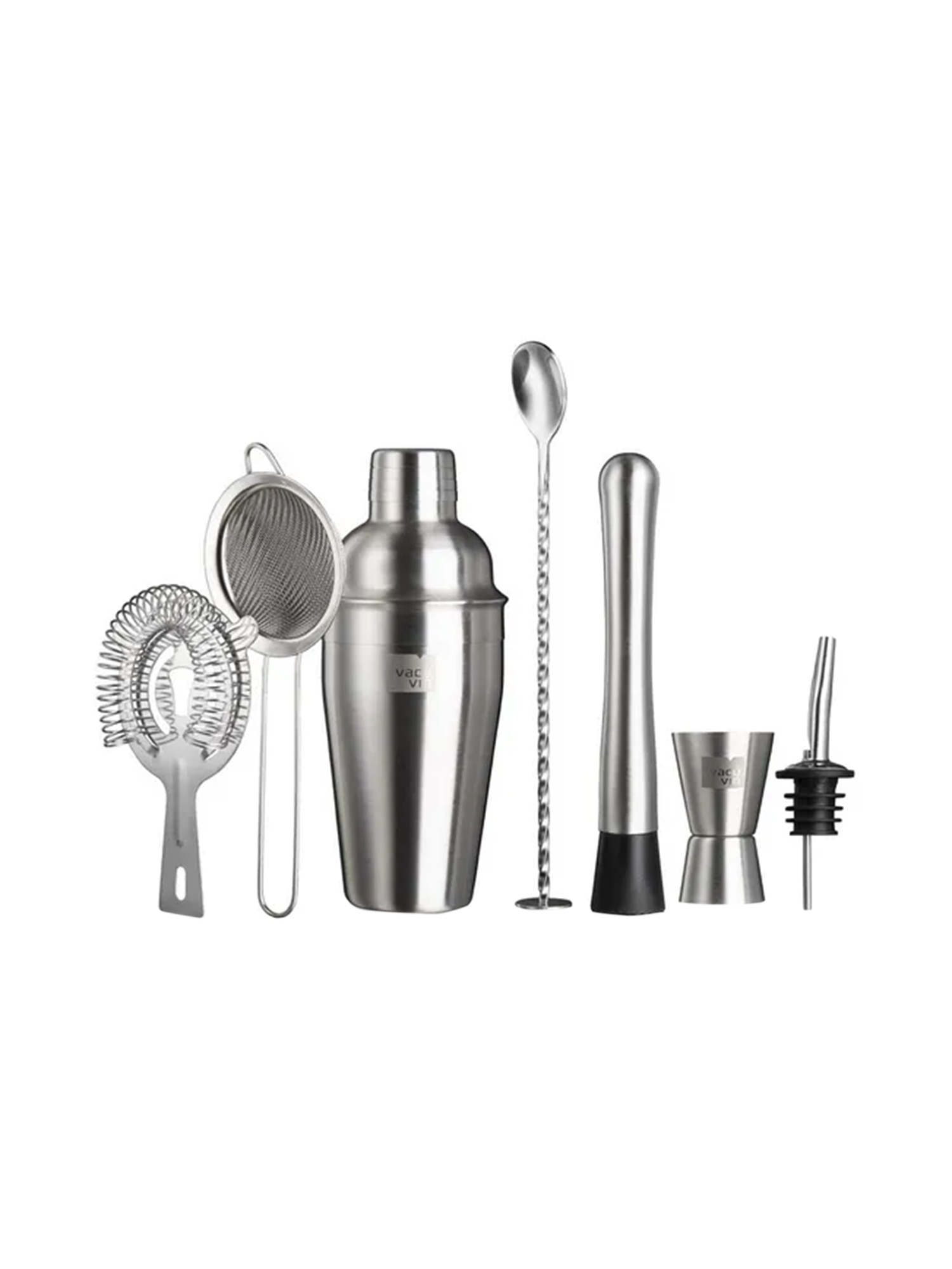 Üben Sie sich mit diesem 7-teiligen Cocktail-Set in der Kunst des Cocktail-Mixens. Hier finden Sie alles, was das Herz für eine vollständige und stylische Hausbar begehrt. Der Cocktail-Shaker mit einem Füllvolumen von 550 Millilitern können Sie gleich mehrere Gäste mit köstlichen Drinks versorgen. Mit dem Double Jigger messen Sie alle Zutaten präzise ab und können jedes Rezept exakt befolgen. Der Stössel hilft beim Crushen von Eis, Botanicals oder Früchten, die dem Getränk ein einzigartiges Aroma verleihen. Ein Ausgiesser erlaubt die perfekte Dosierung aller Spirituosen. Ein Strainer filtert die Eiswürfel wieder heraus und ein feines Sieb alle verbliebenen Feststoffe, damit Sie klare Drinks geniessen können. Ein Barlöffel ist Ihr bester Freund, wenn Sie gerührte und nicht geschüttelte Cocktails bevorzugen oder es auf eine geschichtete Variante abgesehen haben. Sichern Sie sich jetzt, dieses allumfassende Rundum-Paket für die Erfüllung aller Ihrer Cocktail-Träume.