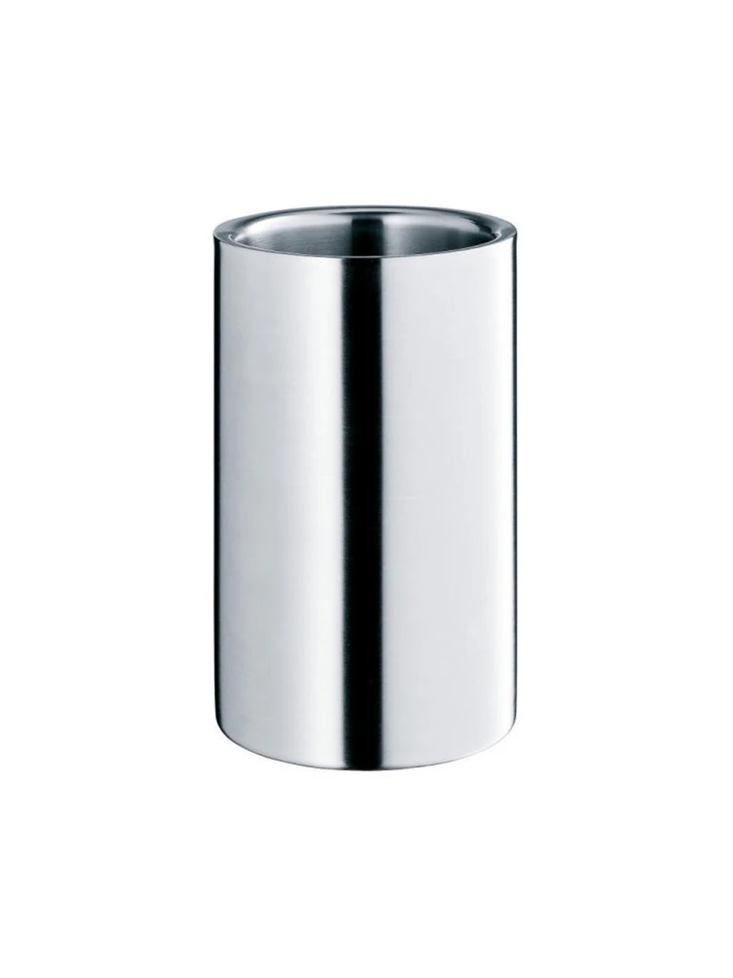 Dieser aus hochwertigem Edelstahl gefertigte Weinkühler überzeugt durch seine doppelwandige Verarbeitung. Dadurch kühlen Sie Ihren Wein ohne zusätzliche Kühlakkus bzw. Eis. Einfach die vorgekühlte Weinflasche in den Kühler stellen und bis zum letzten Glas kühlen Wein geniessen.