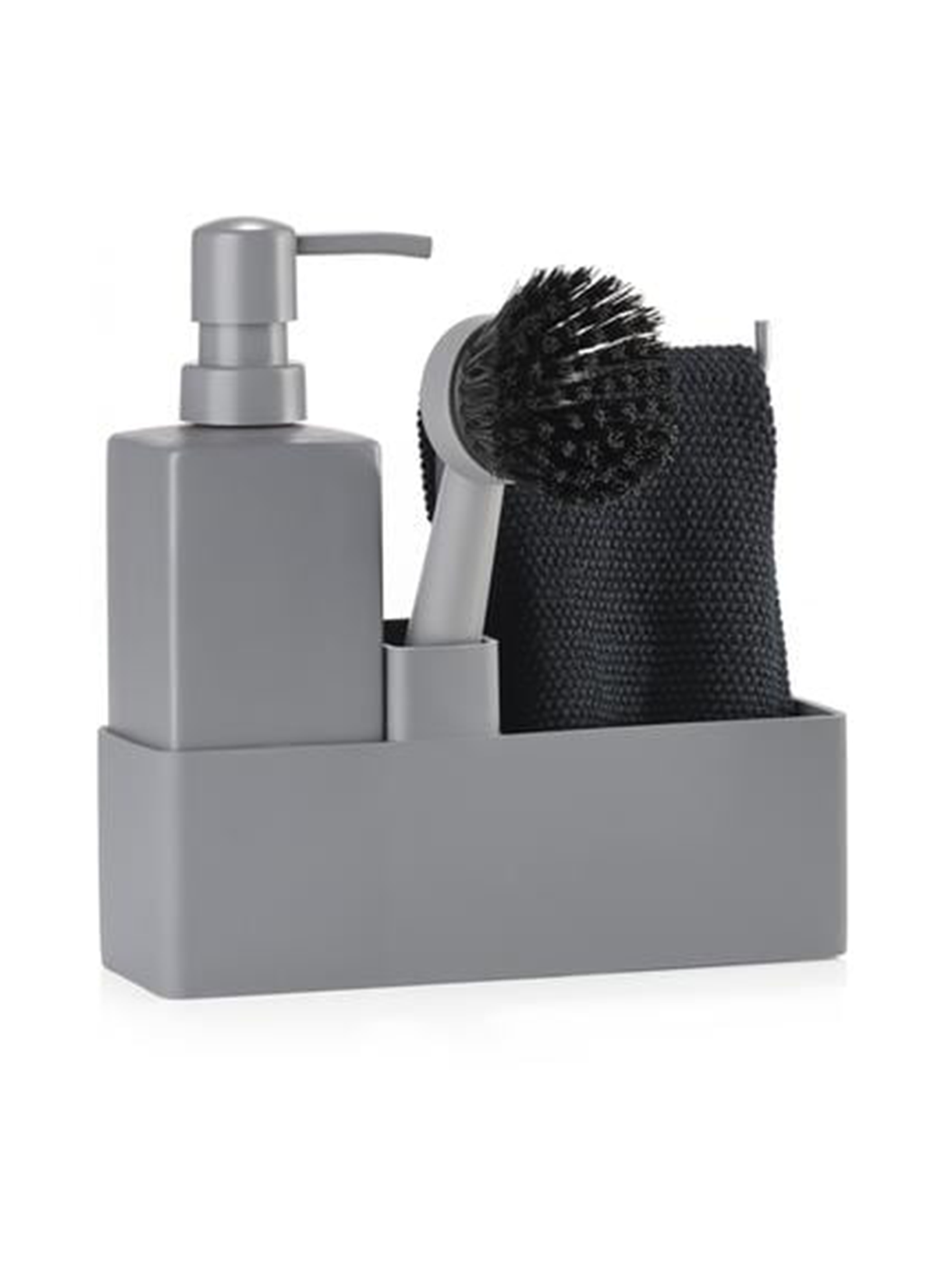 - Vierteilige Set enthält Spülmittelspender, Geschirrbürste und passenden Lappen